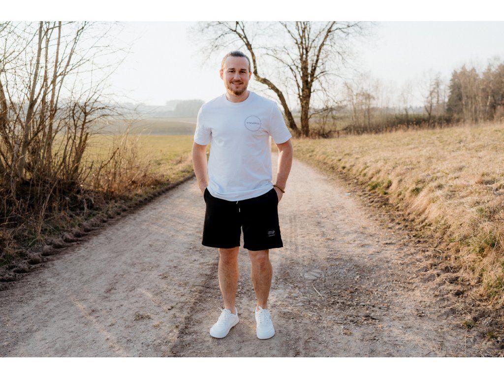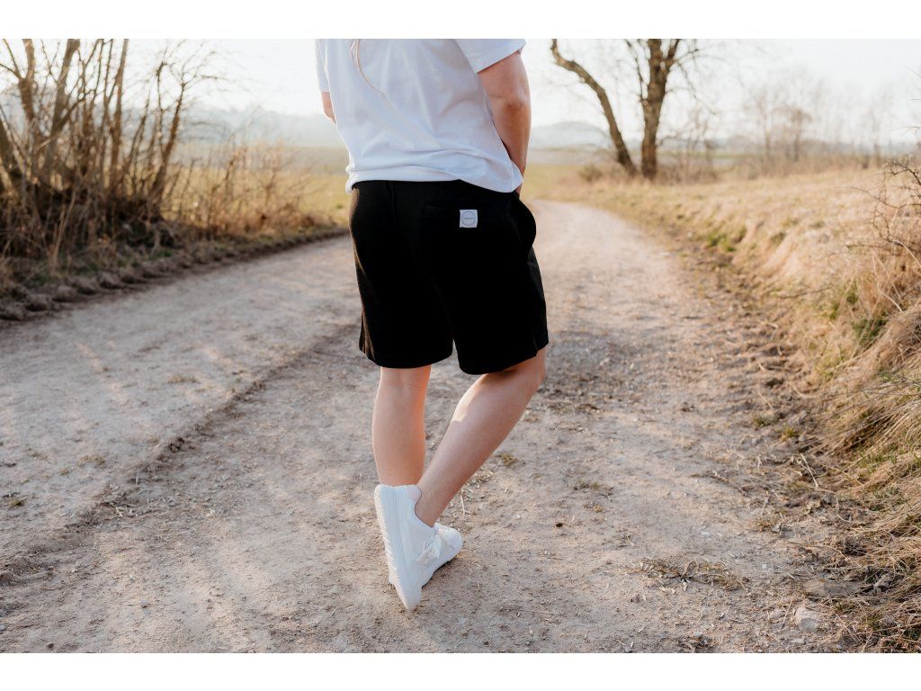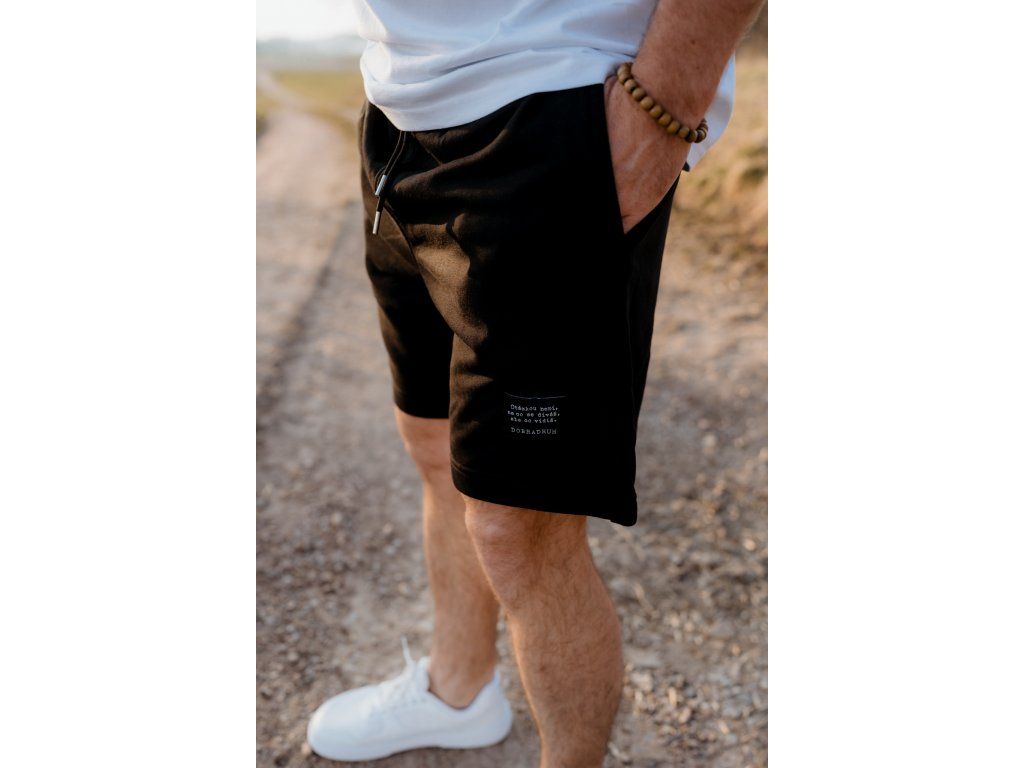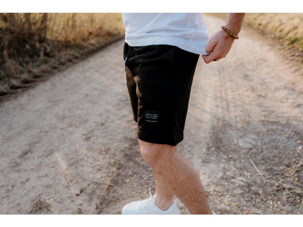 - Kraťasy mají na zadní kapse našitý štítek s logem a nad levým kolenem vpředu našitý štítek s mottem značky.