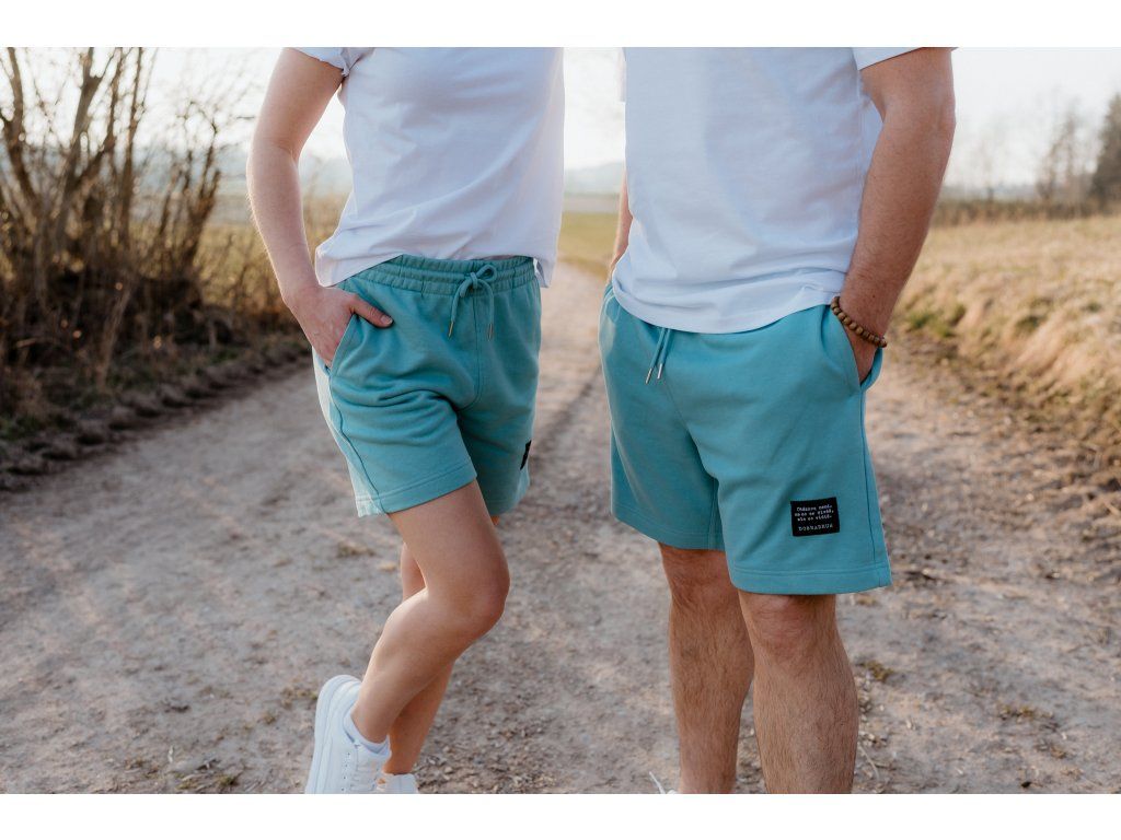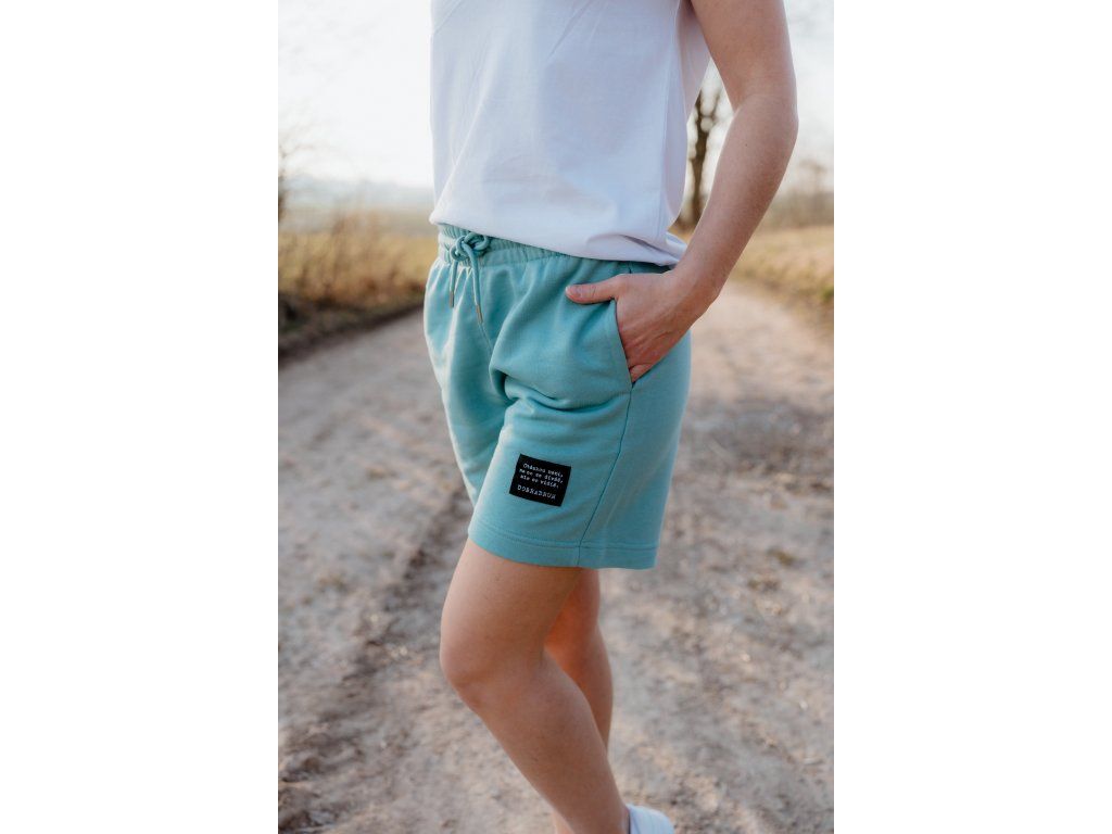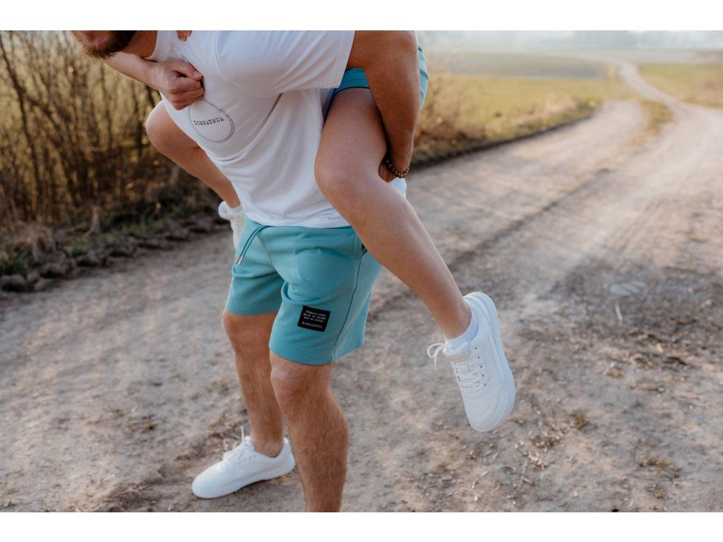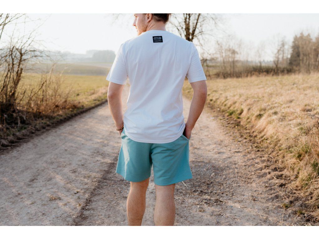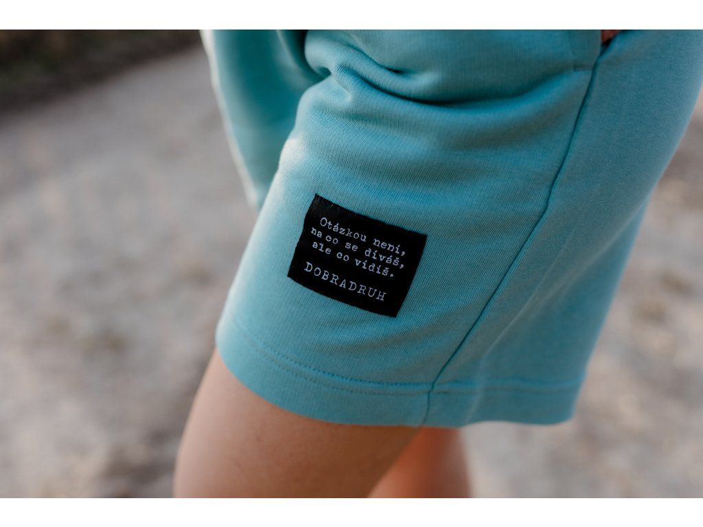 - Kraťasy mají na zadní kapse našitý štítek s logem a nad levým kolenem vpředu našitý štítek s mottem značky.