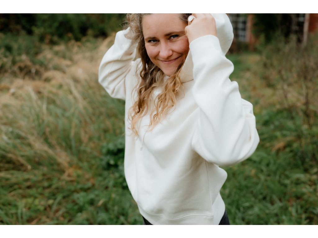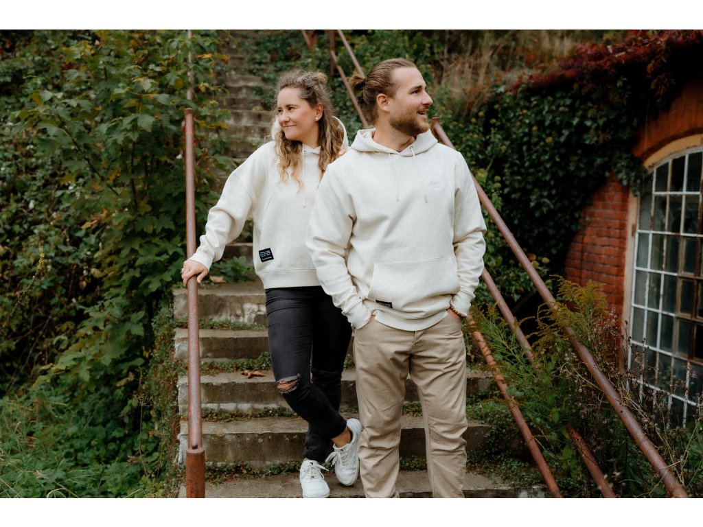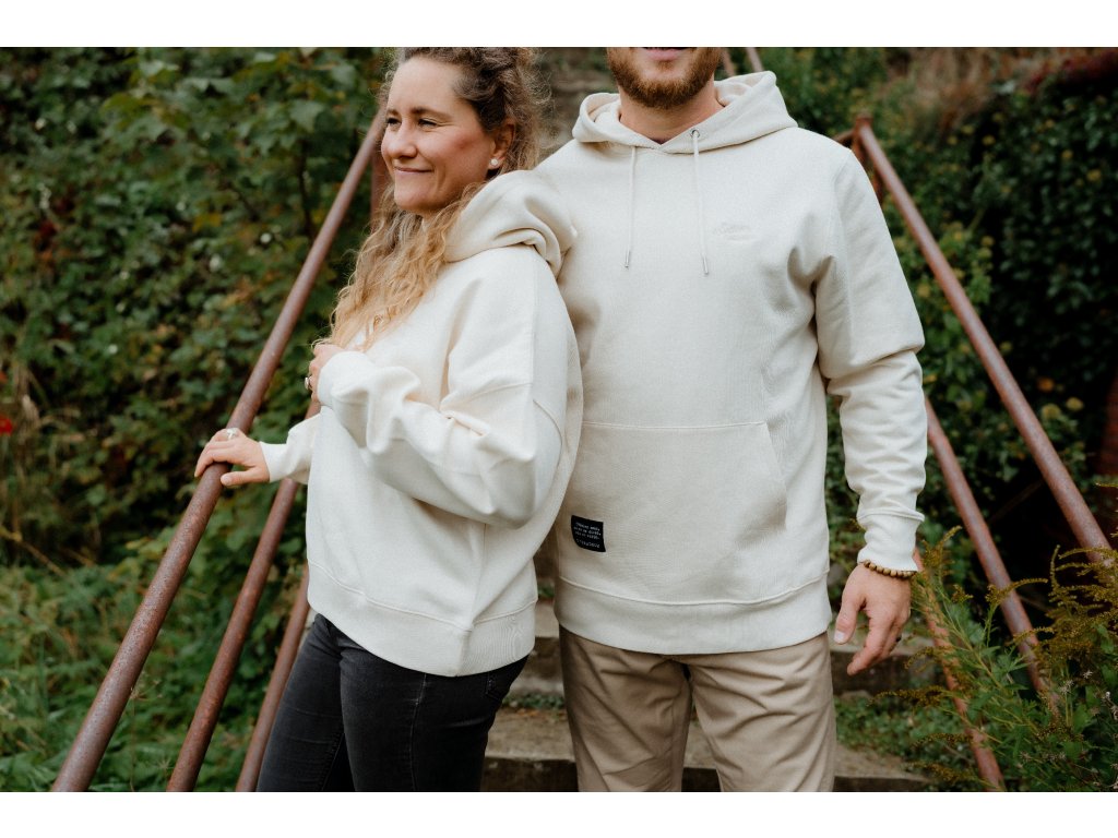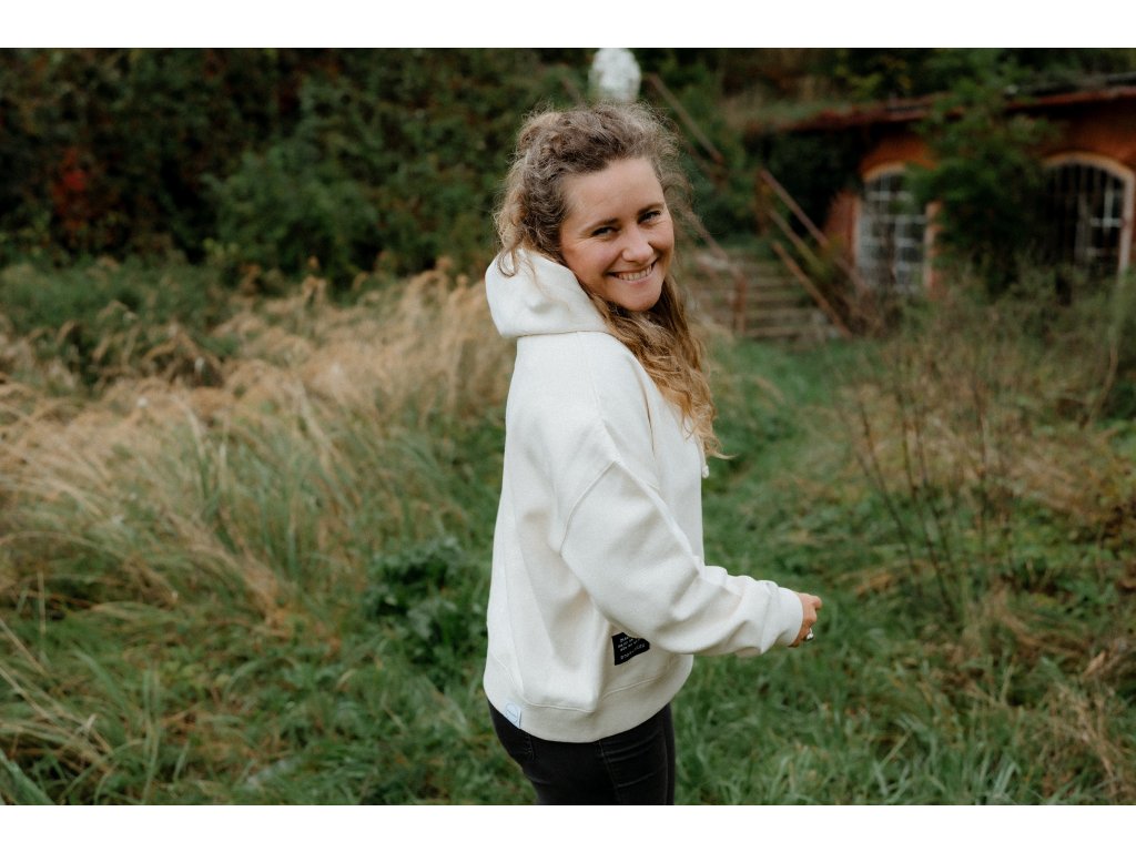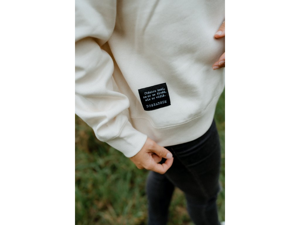 - Mikina má na srdci výšivku Srdcem dobradruh, vpředu nad spodním lemem našité motto značky a na zadním lemu našité logo.