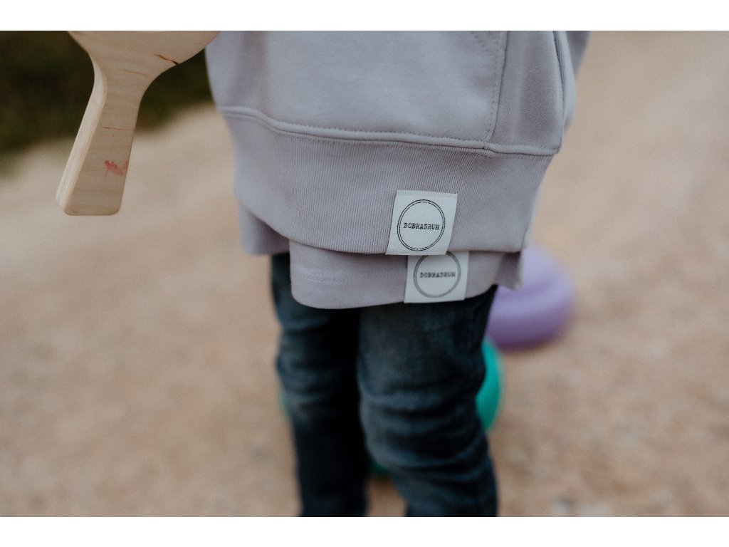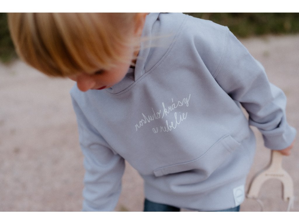• Mikina má 12 cm široký nápis „rostu do krásy a rebelie“ na prsou, na spodním lemu vpředu štítek s logem a nad spodním lemem uprostřed vzadu našitý štítek s mottem značky.