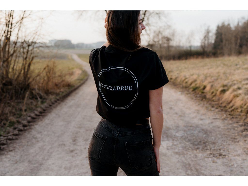 - Tričko má 25 cm velké logo na zádech, na spodním levém lemu vpředu našitý štítek s mottem značky.