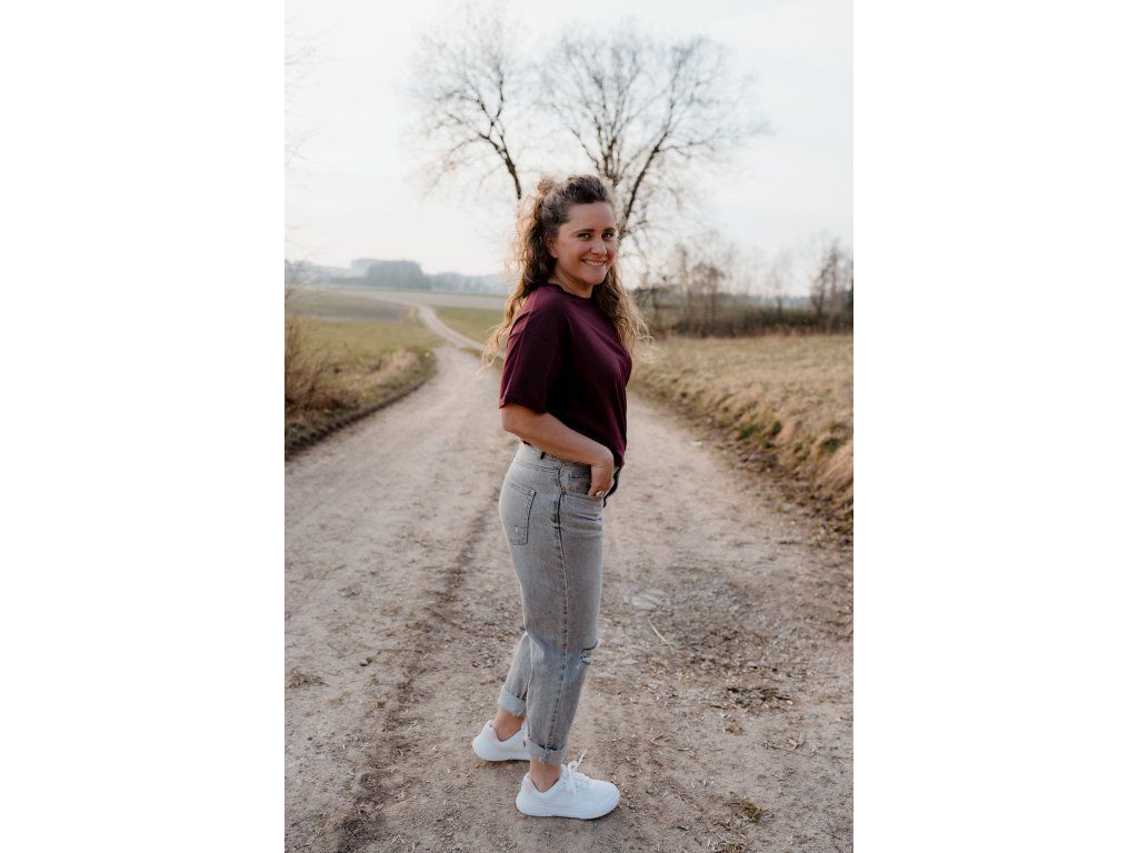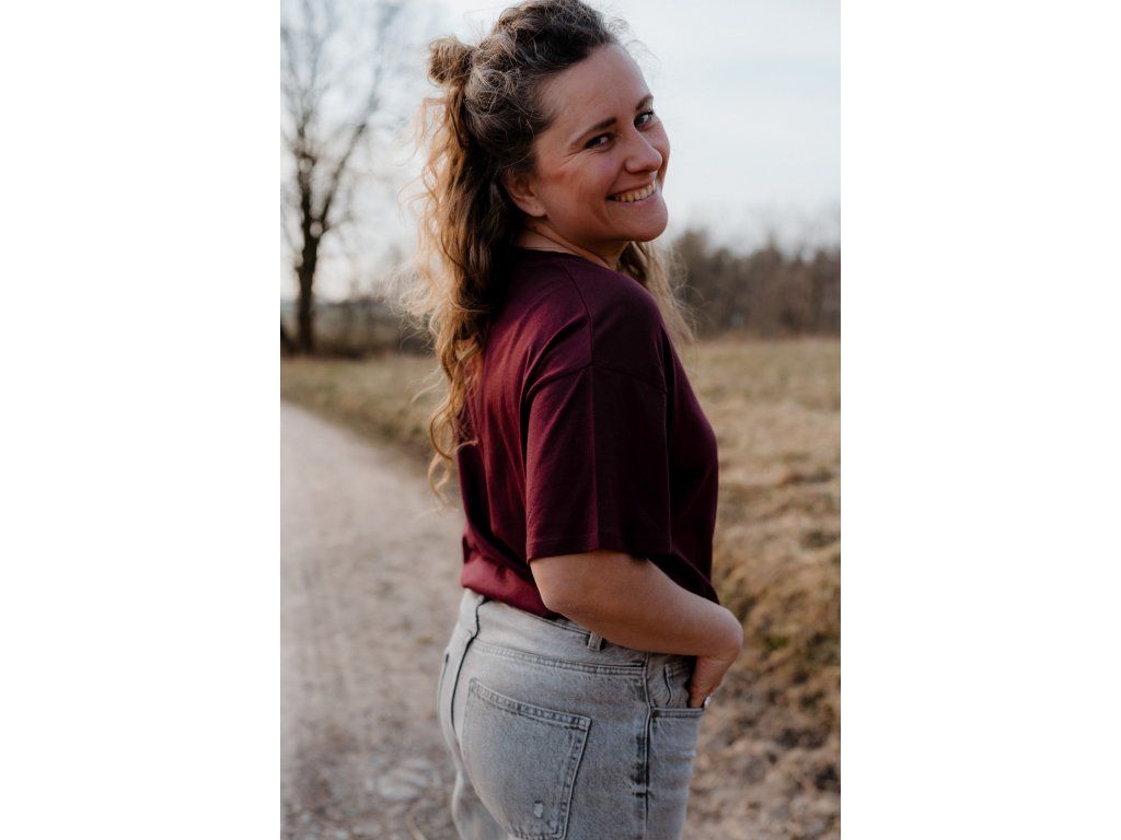 - Dobradružka Pája na fotografii měří 162 cm a na sobě má velikost M, kterou běžně nosí. Pro méně oversize look by zvládla i Sko.
